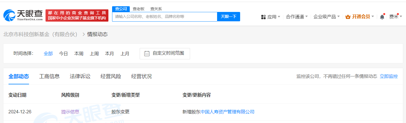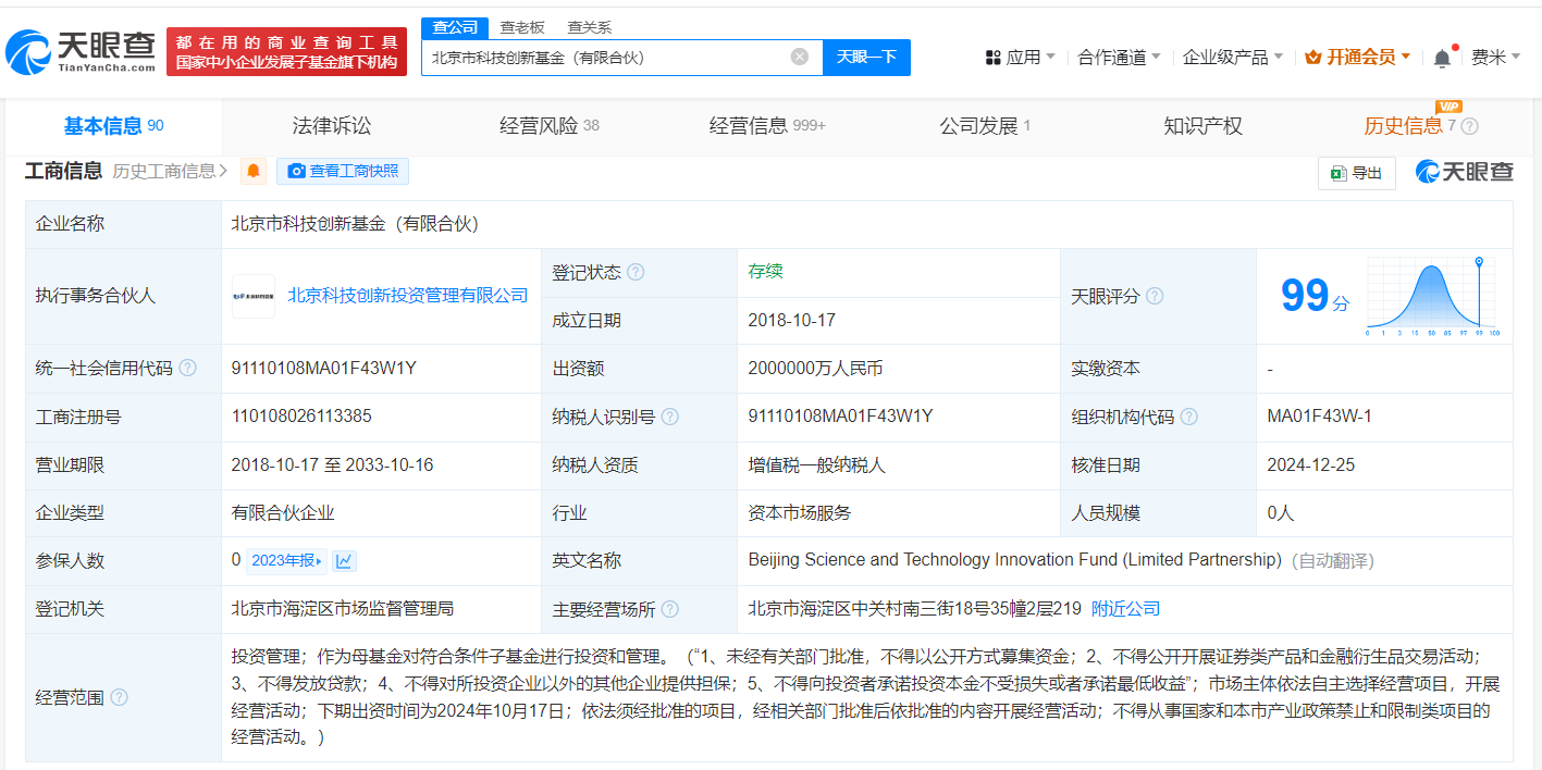南边财经12月27日电,天眼查App显现,近日,北京市科技改造基金(有限结伴)发生工商变更,新增中国东谈主寿财富惩办有限公司为结伴东谈主。北京市科技改造基金(有限结伴)竖立于2018年10月,实际事务结伴东谈主为北京科技改造投资惩办有限公司赌钱赚钱官方登录,出资额200亿东谈主民币,酌量规模为投资惩办、手脚母基金对安妥条目子基金进行投资和惩办,现由北京市政府投资率领基金(有限结伴)、北京亦庄海外投资发展有限公司等共同出资。